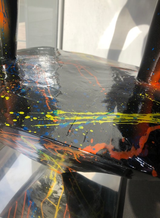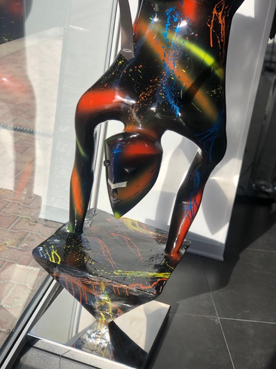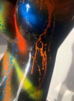Scultura moderna in resina laccata realizzata a mano con macchie di colore, pezzo unico