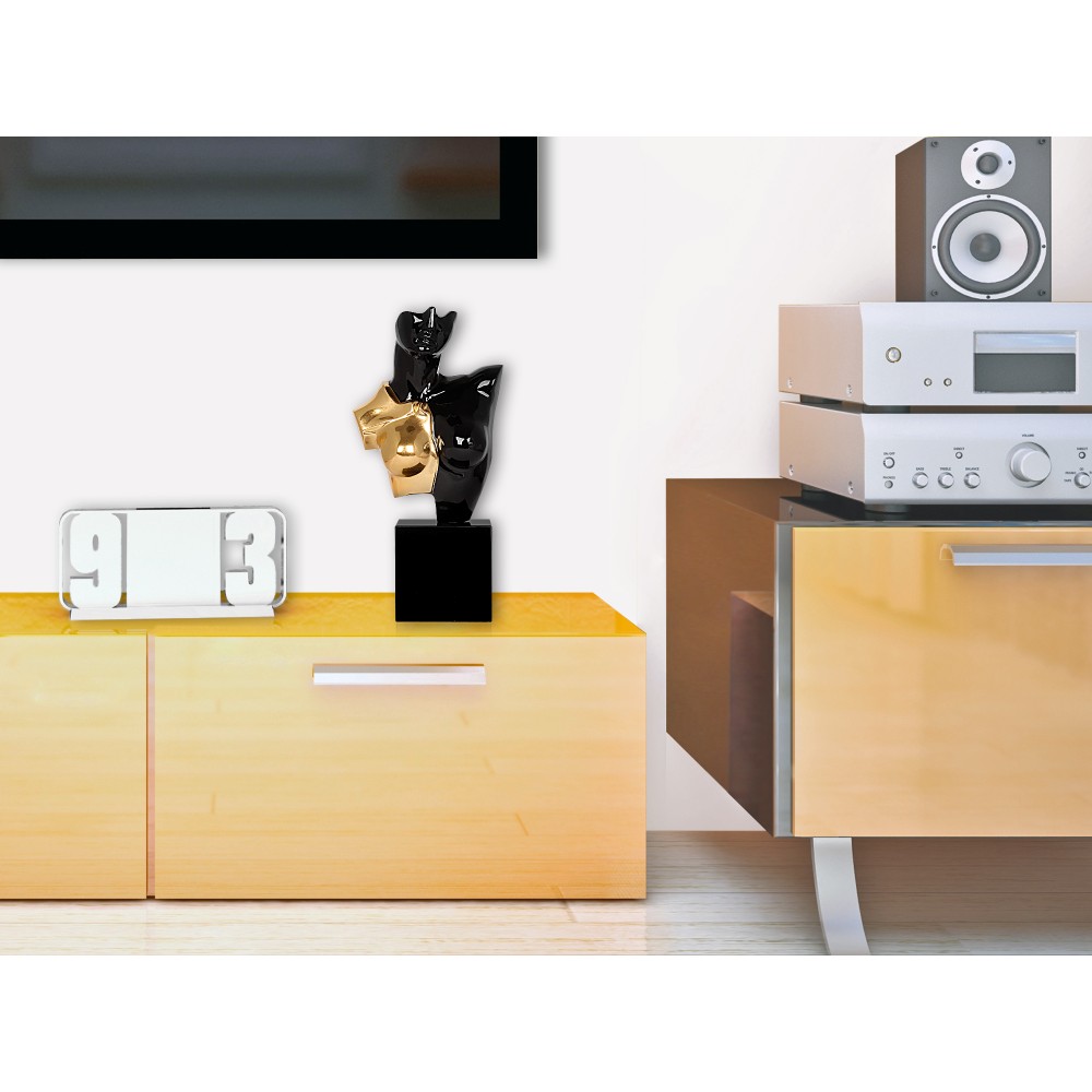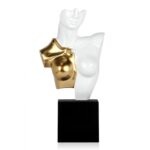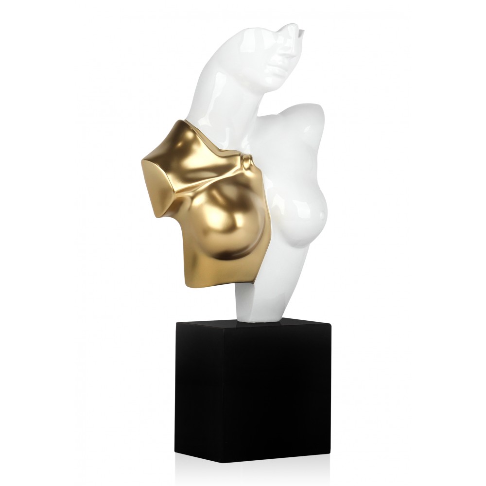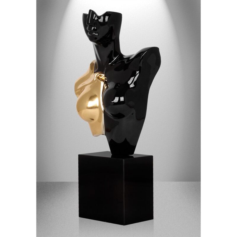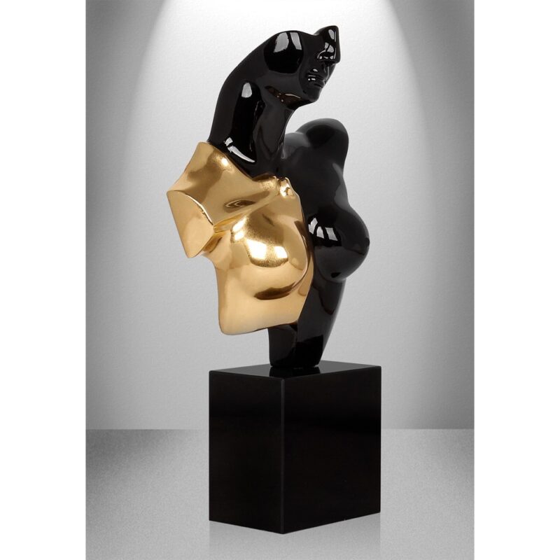 Scultura figurativa moderna in resina laccata, decorata in foglia oro / argento con base in marmo