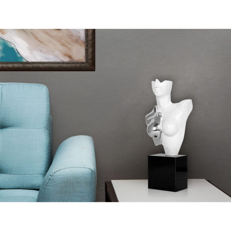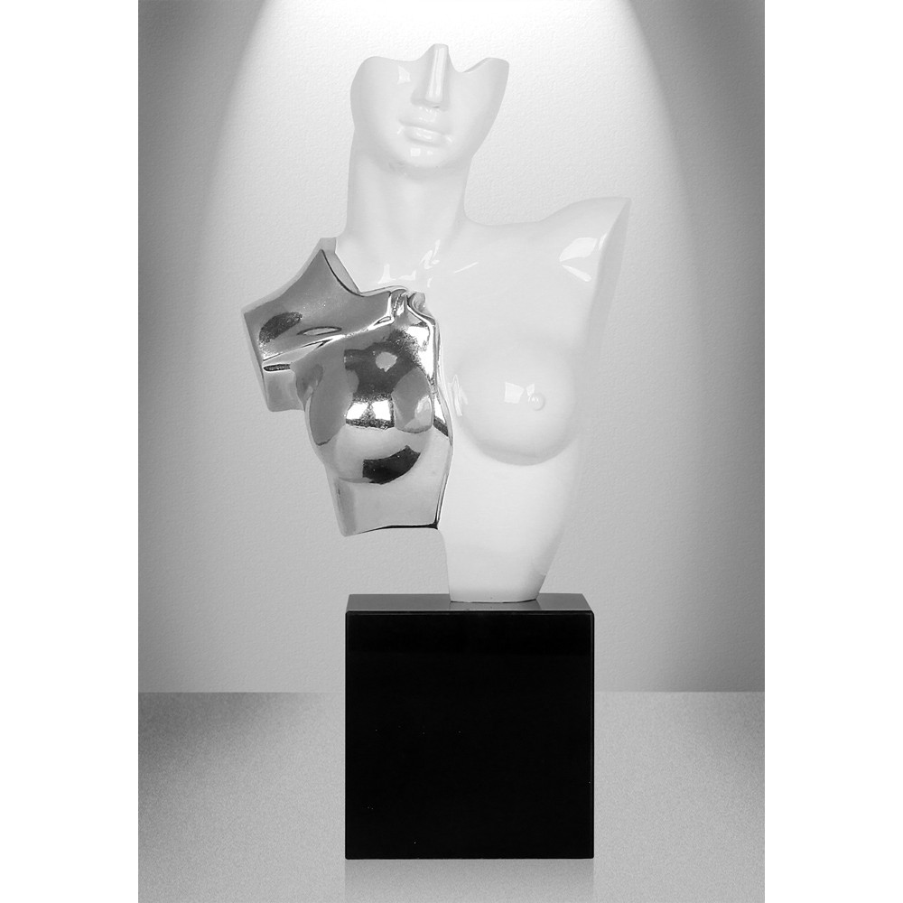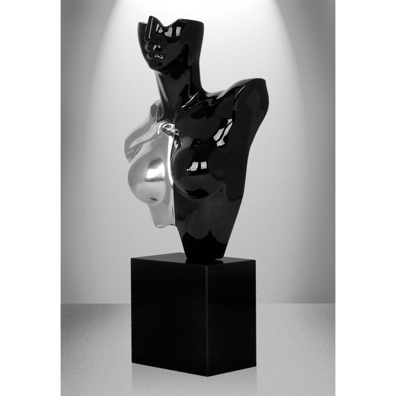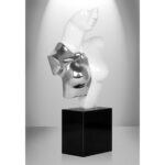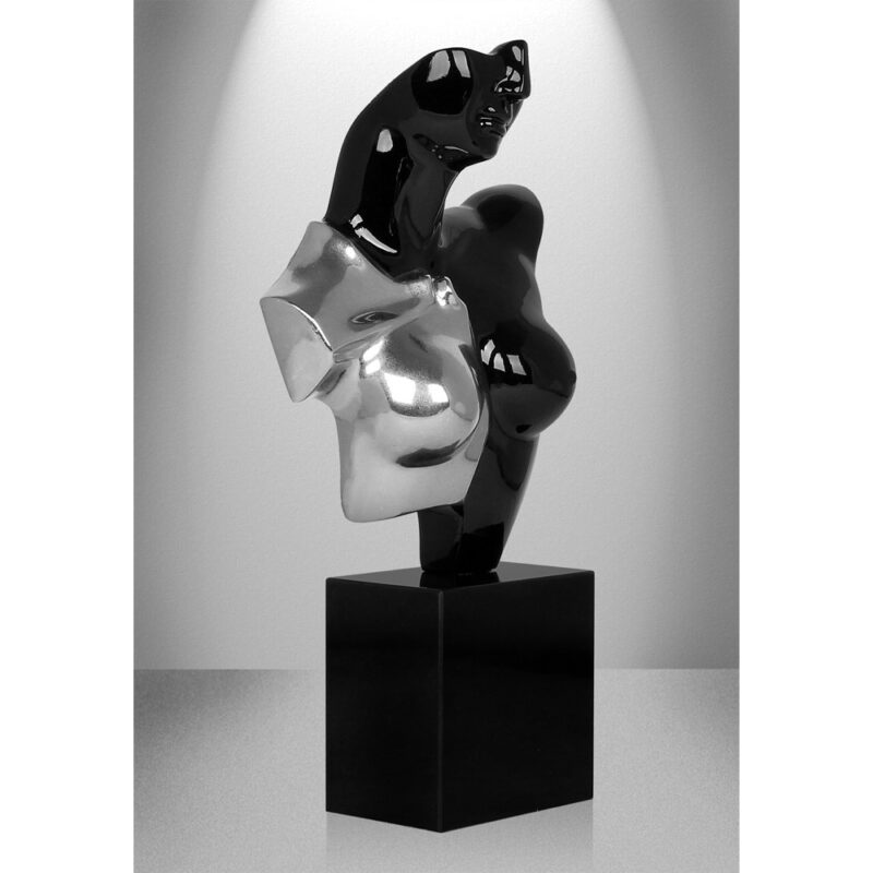 “Lightness” è una scultura figurativa moderna, realizzata dall’artista in resina satinata effetto metallo e metà delle sue braccia sfumate di bianco, con una piccola base in marmo nera e una sfera bianca. Parliamo di un opera di particolare bellezza che vede la figura di una donna poggiata come una farfalla su di una sfera. Non c’è sforzo nel volto, la leggerezza rende facile questa operazione. Questa scultura (unico pezzo in assoluto) si adatterà a qualsiasi tipo di arredamento abbiate in casa, soprattutto se in compagnia di un’oggettistica fine e delicata, i due principali attributi con i quali ci sentiremmo di descrivere quest’opera.