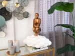 “Lightness” è una scultura figurativa moderna, realizzata dall’artista in resina satinata effetto metallo e metà delle sue braccia sfumate di bianco, con una piccola base in marmo nera e una sfera bianca. Parliamo di un opera di particolare bellezza che vede la figura di una donna poggiata come una farfalla su di una sfera. Non c’è sforzo nel volto, la leggerezza rende facile questa operazione. Questa scultura (unico pezzo in assoluto) si adatterà a qualsiasi tipo di arredamento abbiate in casa, soprattutto se in compagnia di un’oggettistica fine e delicata, i due principali attributi con i quali ci sentiremmo di descrivere quest’opera.