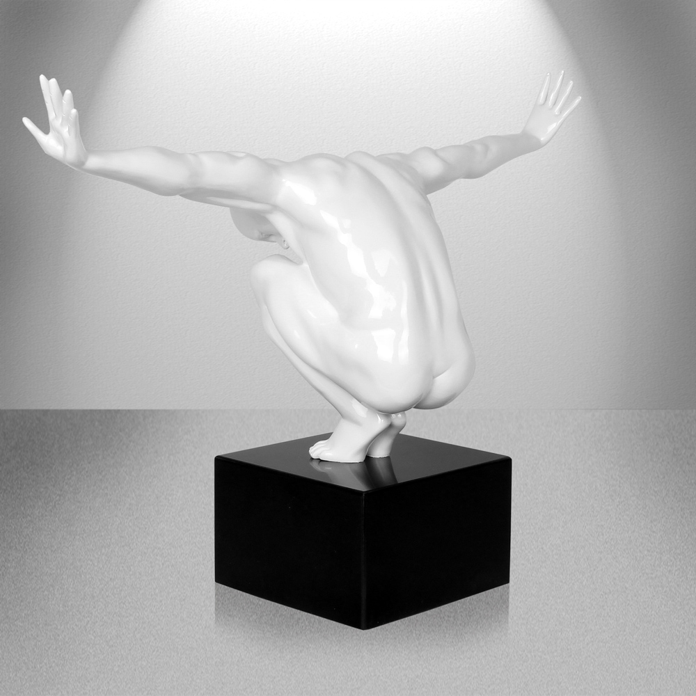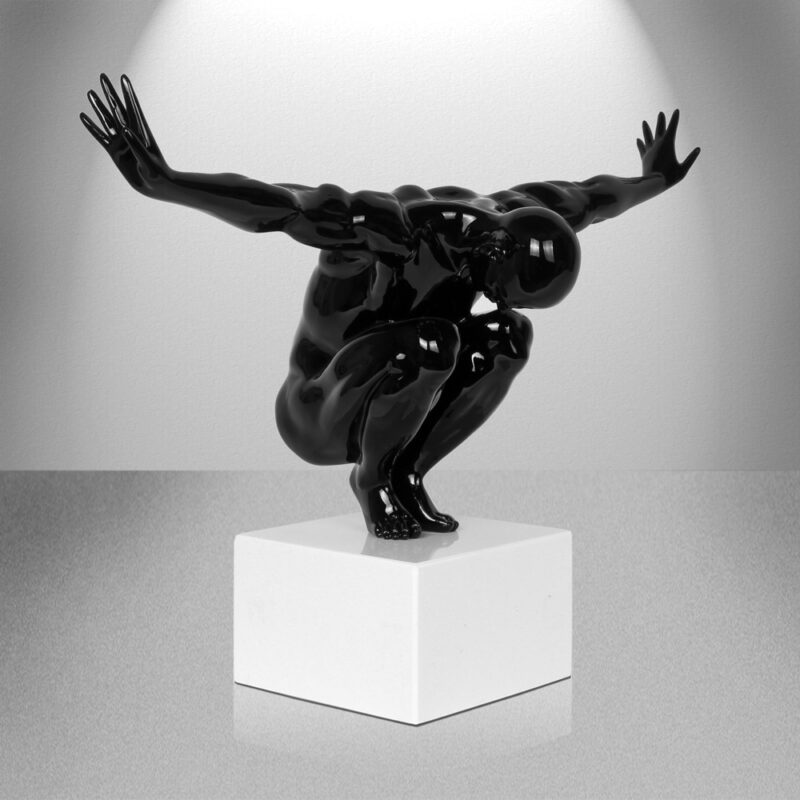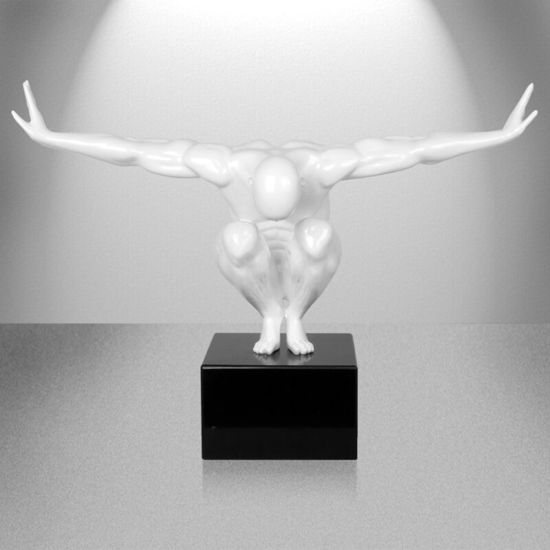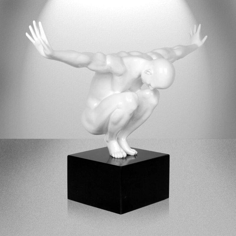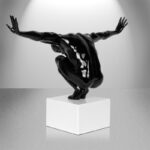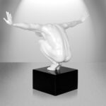 “Lightness” è una scultura figurativa moderna, realizzata dall’artista in resina satinata effetto metallo e metà delle sue braccia sfumate di bianco, con una piccola base in marmo nera e una sfera bianca. Parliamo di un opera di particolare bellezza che vede la figura di una donna poggiata come una farfalla su di una sfera. Non c’è sforzo nel volto, la leggerezza rende facile questa operazione. Questa scultura (unico pezzo in assoluto) si adatterà a qualsiasi tipo di arredamento abbiate in casa, soprattutto se in compagnia di un’oggettistica fine e delicata, i due principali attributi con i quali ci sentiremmo di descrivere quest’opera.