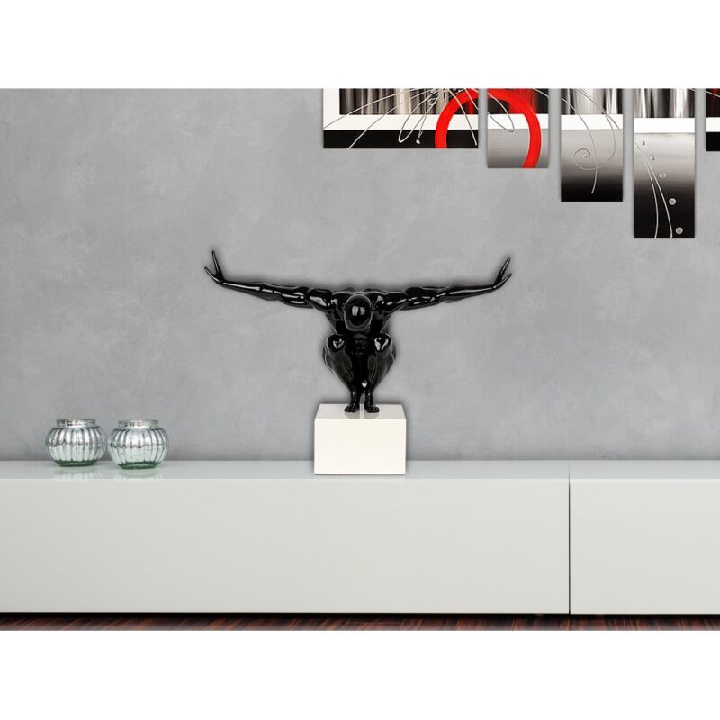 Scultura figurativa moderna in resina laccata con base in marmo.