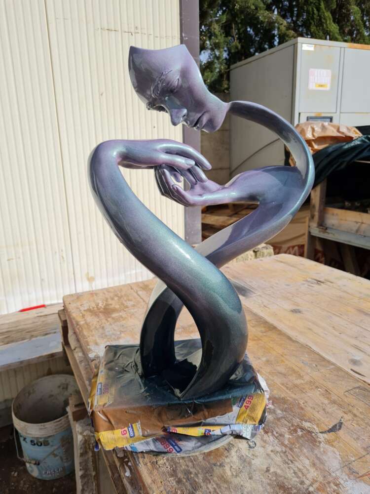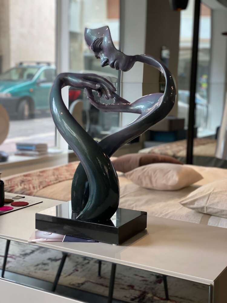 Scultura figurativa moderna in resina realizzata da un artista a mano.