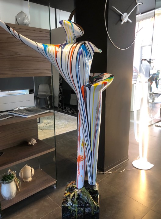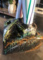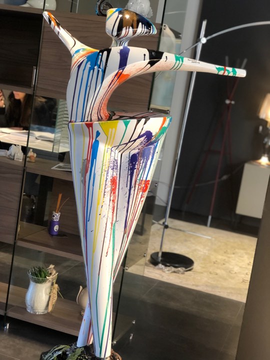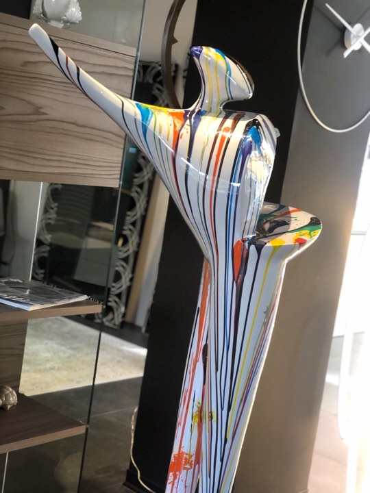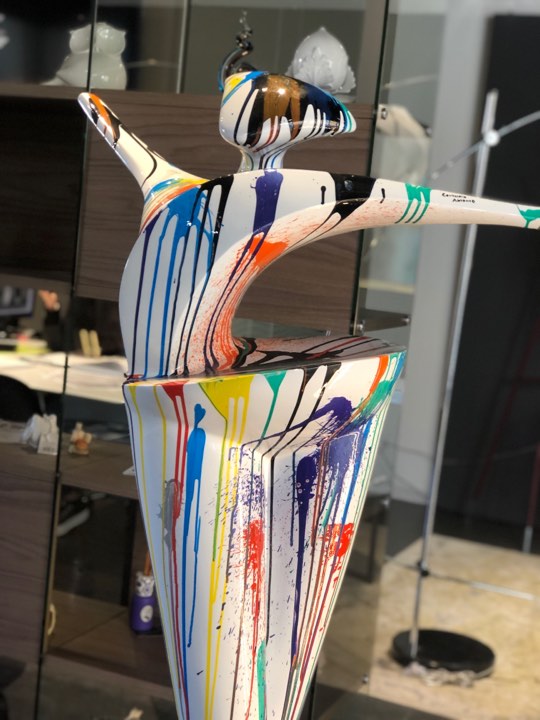 Scultura moderna in resina laccata realizzata a mano con macchie di colore, pezzo unico