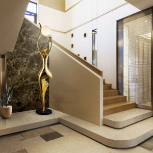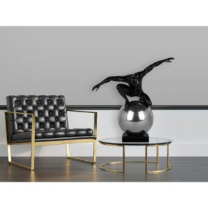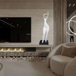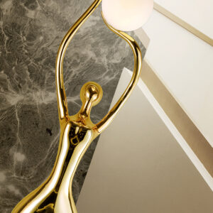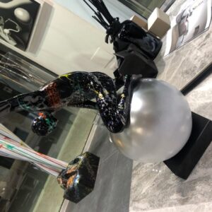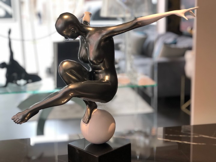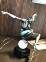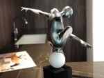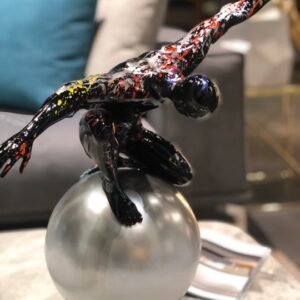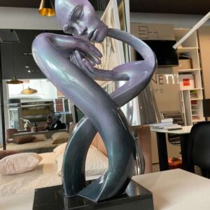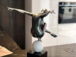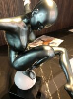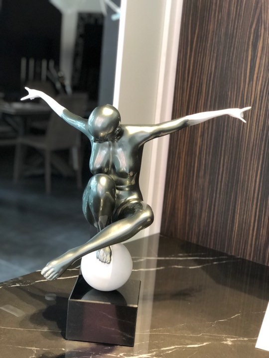 “Lightness” è una scultura figurativa moderna, realizzata dall’artista in resina satinata effetto metallo e metà delle sue braccia sfumate di bianco, con una piccola base in marmo nera e una sfera bianca. Parliamo di un opera di particolare bellezza che vede la figura di una donna poggiata come una farfalla su di una sfera. Non c’è sforzo nel volto, la leggerezza rende facile questa operazione. Questa scultura (unico pezzo in assoluto) si adatterà a qualsiasi tipo di arredamento abbiate in casa, soprattutto se in compagnia di un’oggettistica fine e delicata, i due principali attributi con i quali ci sentiremmo di descrivere quest’opera.