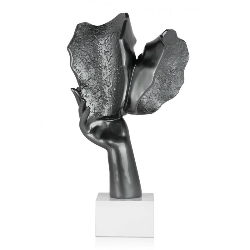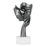Scultura figurativa moderna in resina effetto metallo con base in marmo