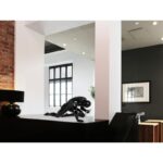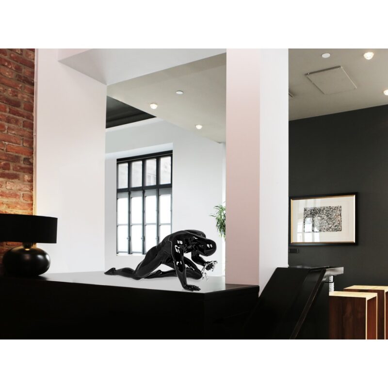 Scultura figurativa moderna in resina laccata e con dettaglio in foglia oro/argento