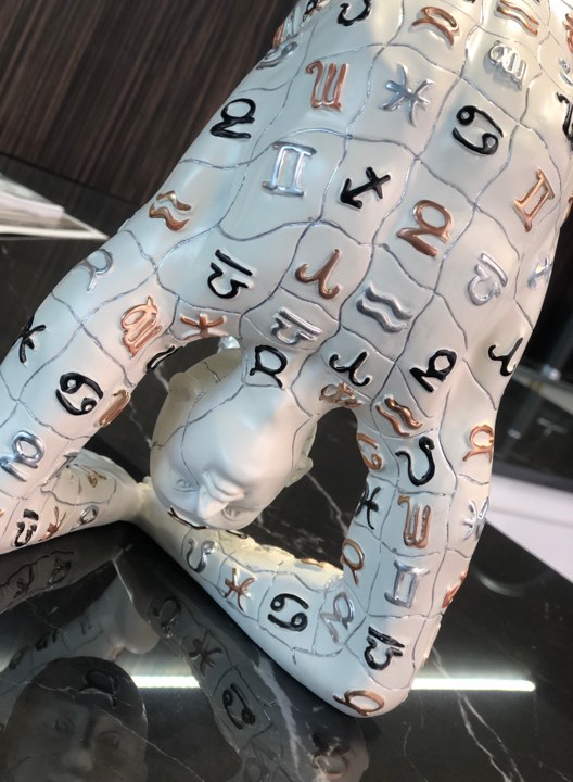 Scultura figurativa moderna in resina decorata a mano con i segni della costellazione zodiacale, prodotta in serie numerata
